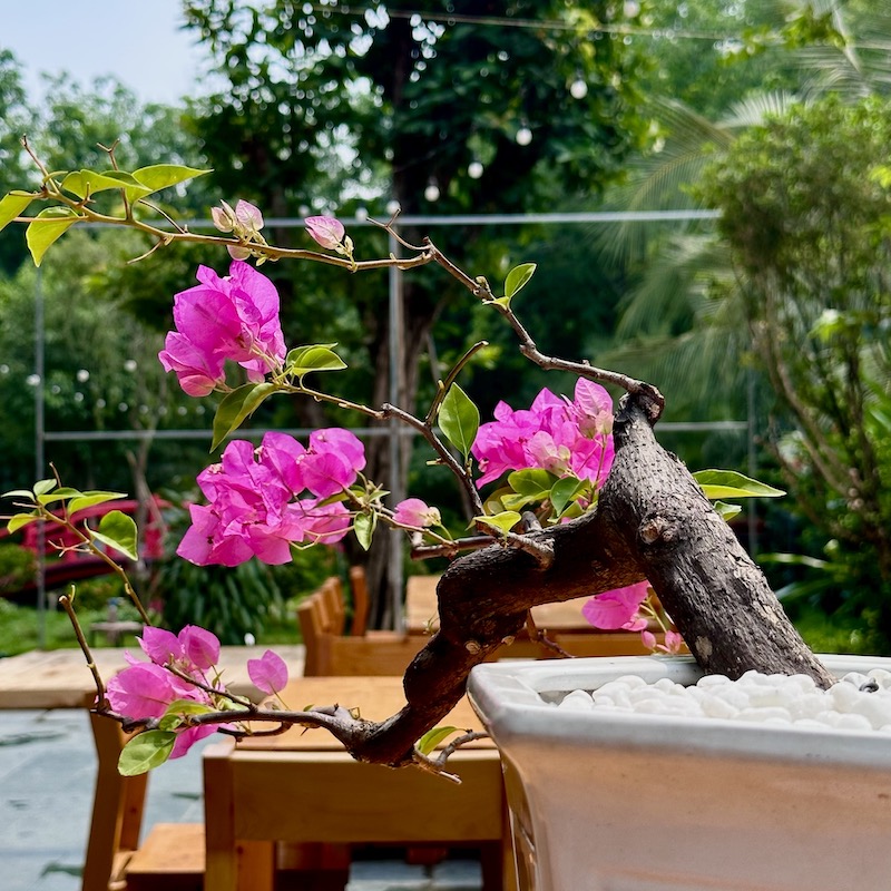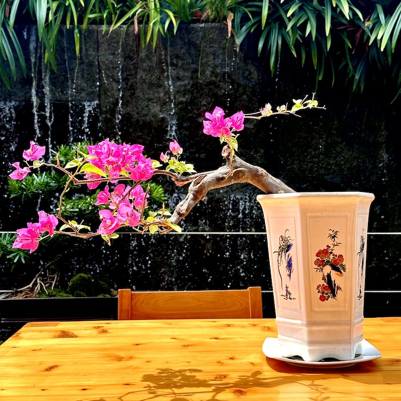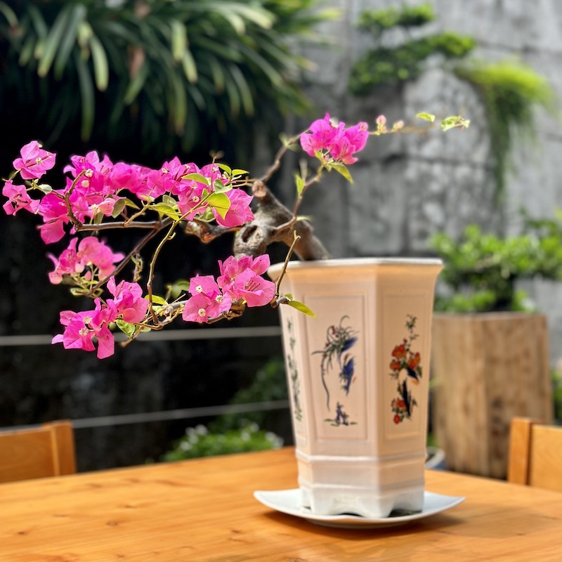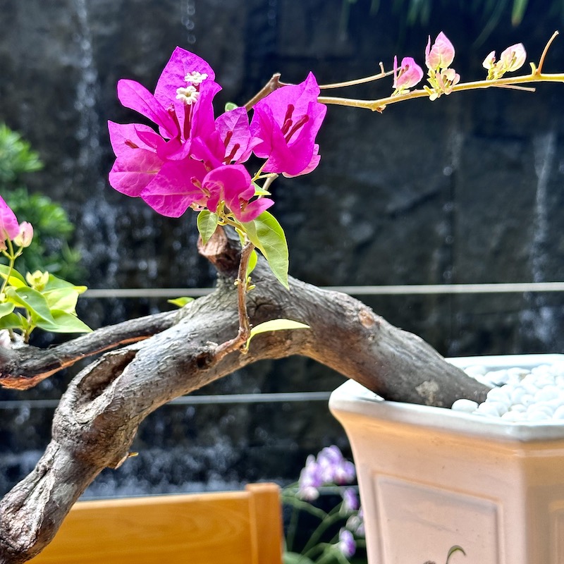 Hoa giấy tím huế tạo dáng bonsai phù hợp với mọi không gian. Vanh gốc 20cm, chiều cao chậu 50cm.